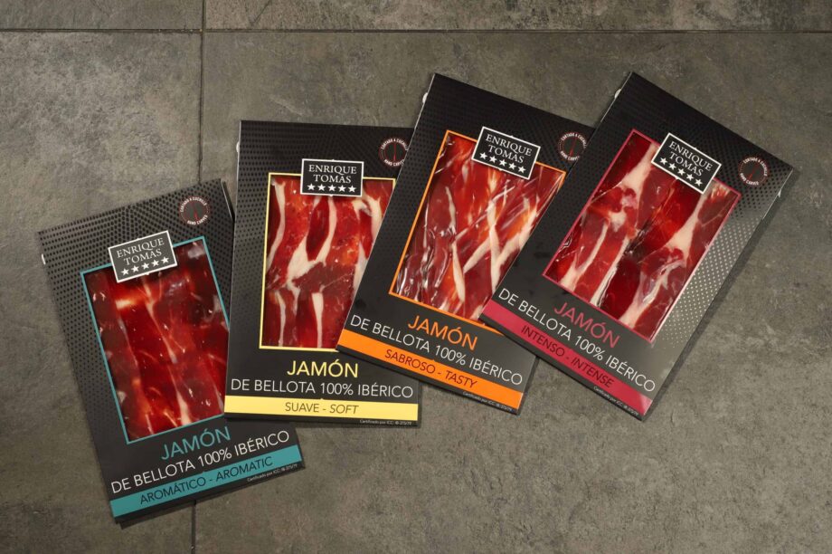 The acorn-fed ham tasting allows you to enjoy the 4 legendary versions of Enrique Tomás acorn-fed ham. Discover their different nuances and the personality of each variety. The 100% Iberian Acorn-Fed Ham Tasting Box consists of: